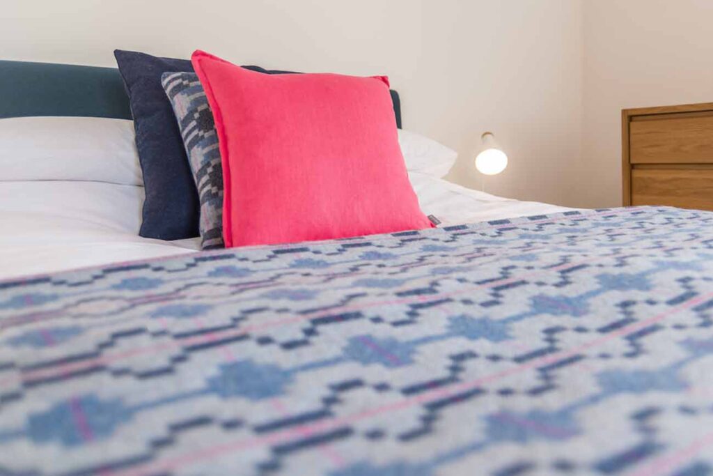 Think cool, clean interior but with cosy rugs, fluffy sheepskins and modern Welsh blankets.